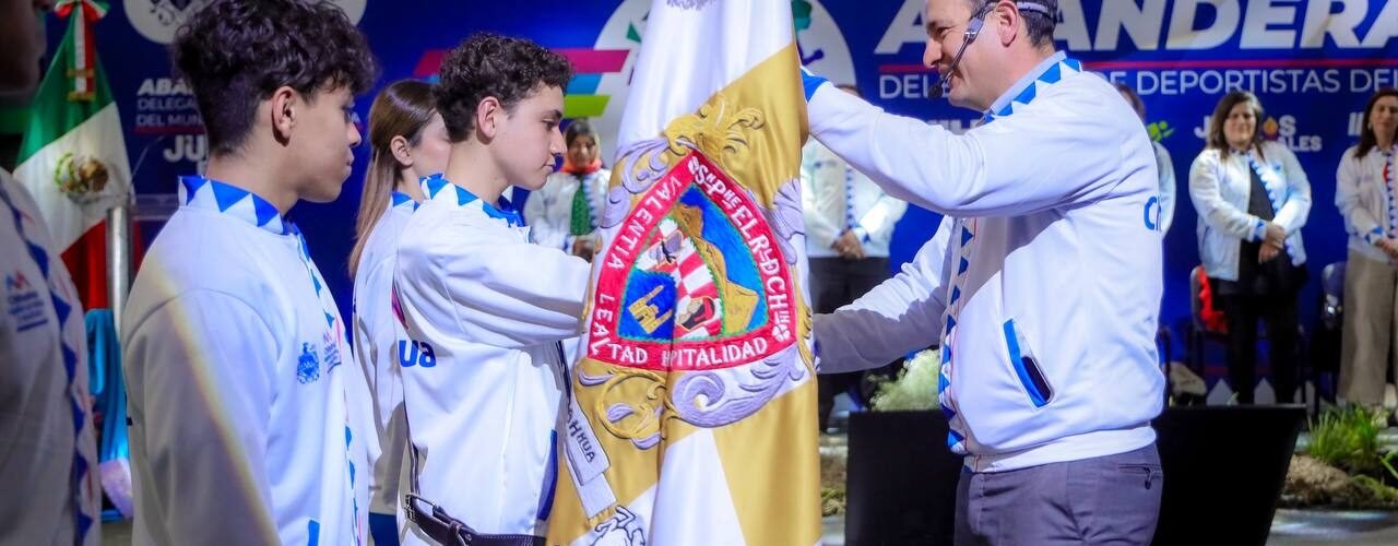 El alcalde Marco Bonilla, abanderó oficialmente a deportistas y entrenadores que integran la delegación del Municipio de Chihuahua para su participación en las diversas disciplinas del calendario de los Juegos Estatales CONADE 2025, siendo más de mil 200 deportistas y entrenadores que tendrán competencia en 35 diferentes disciplinas deportivas.