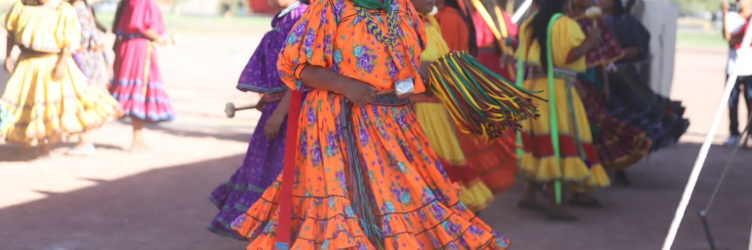 En el festival realizado en la explanada de la Mega Bandera hay exhibición de actividades culturales, música, baile y deportes de grupos originarios, especialmente Tarahumaras.