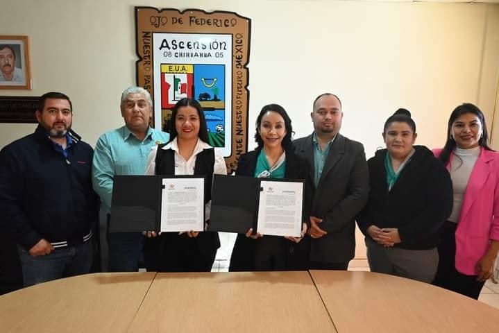 La alcaldesa, Lic. Ivonne De La Hoya Venzor, firma convenio con el ICATECH, para continuar con los cursos en este año 2024, cabe mencionar la asistencia de la directora de ICATECH, Mayra Janeth Camarena Chávez, quien firmó el convenio con la mandataria, también se contó con la presencia de la tesorera municipal, Lic. Gabriela Valles Herrera, el Secretario del H. Ayuntamiento, David Arturo Simental Martínez y el director de Fomento Social y Económico, Lic. Pedro Jaime Meléndez Prieto.