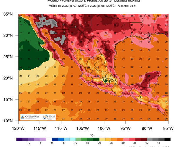 Mientras que para Chihuahua, Delicias, Camargo y Meoqui se estiman valores alrededor de los 37 a 39 °C. En la región serrana se esperan temperaturas máximas de entre los 28 y 30 °C.