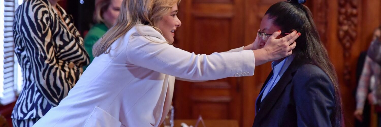 La mandataria estatal recibió al Gabinete Infantil en el Salón Rojo de Palacio de Gobierno, así como a la Gobernadora Infantil por un día, Kimberly Alejandra Hernández Cruz, originaria del municipio de Bocoyna, a quien dirigió unas palabras y distinguió por ocupar el cargo.