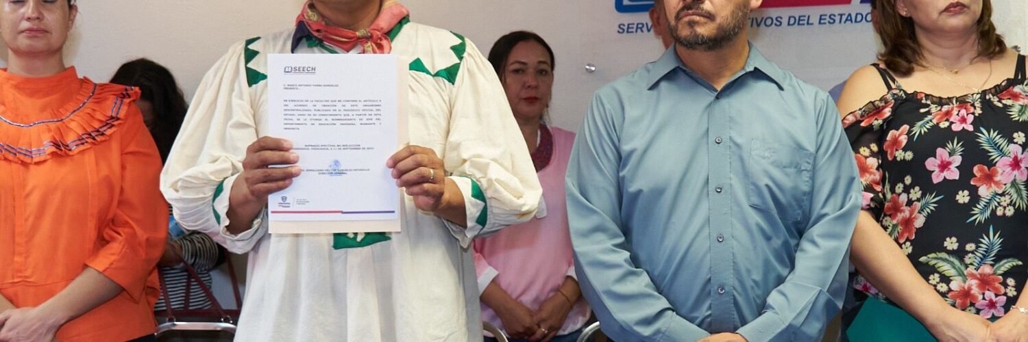 El director de Servicios Educativos del Estado de Chihuahua, Héctor González Estudillo, tomó protesta a Marco Antonio Parra González como jefe del Departamento de Educación Indígena Migrante y Menonita.