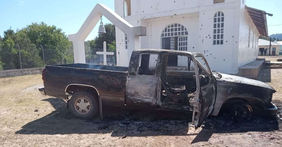La iglesia, así como dos viviendas deshabitadas, presentaban diversos impactos de proyectil de arma de fuego.
