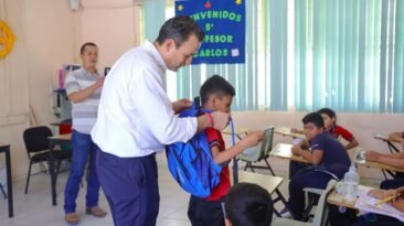 El alcalde Marco Bonilla Mendoza, visitó este día a alumnos de la escuela primaria Emiliano Zapata, ubicada al norte en la colonia Francisco Villa, para hacer entrega de...
