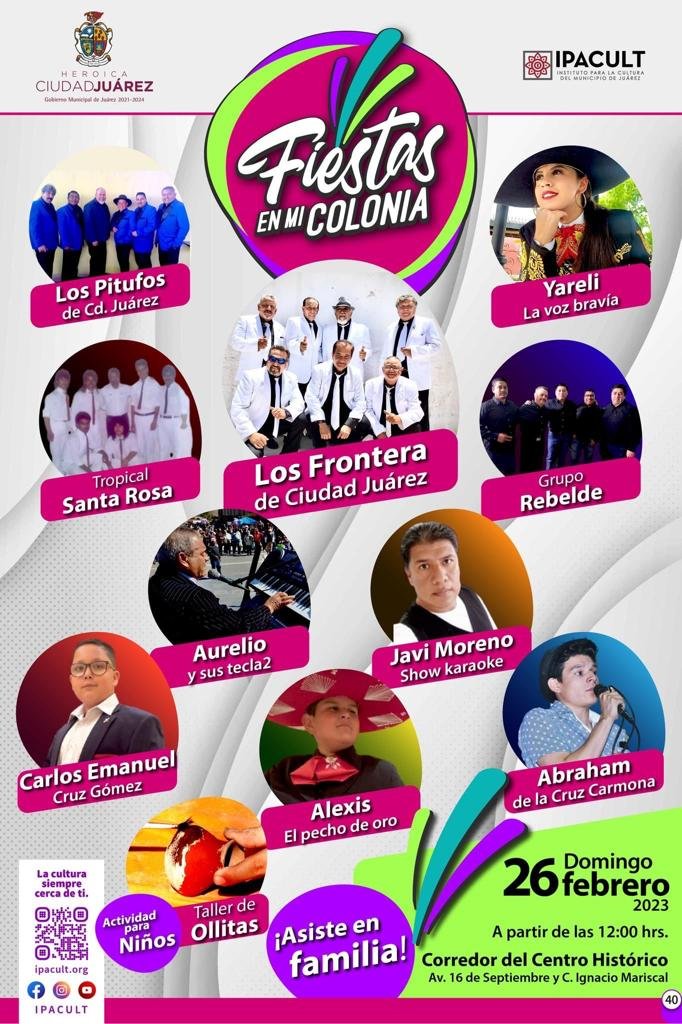El Instituto para la Cultura del Municipio de Juárez (IPACULT) presenta este fin de semana su programa social Fiesta en mi Colonia, evento que tendrá como escenario el...