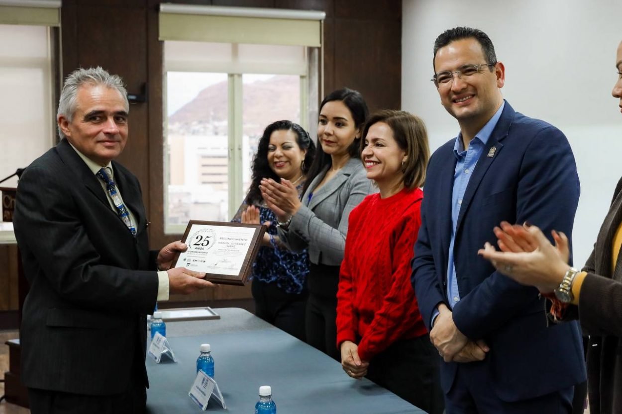 El alcalde, Marco Bonilla, encabezó la develación de una placa en conmemoración del 25 aniversario del Conservatorio de Chihuahua y otorgó reconocimientos a las y los...