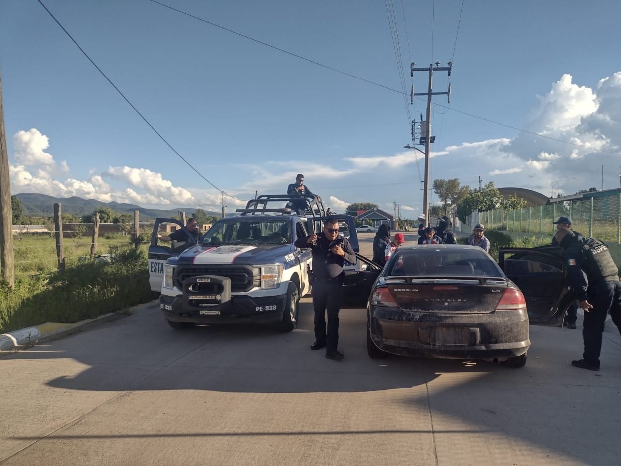 Agentes de la Secretaría de Seguridad Pública del Estado (SSPE), adscritos a la Zona Norte, detuvieron en el poblado de Puerto Palomas a dos hombres que circulaban en...