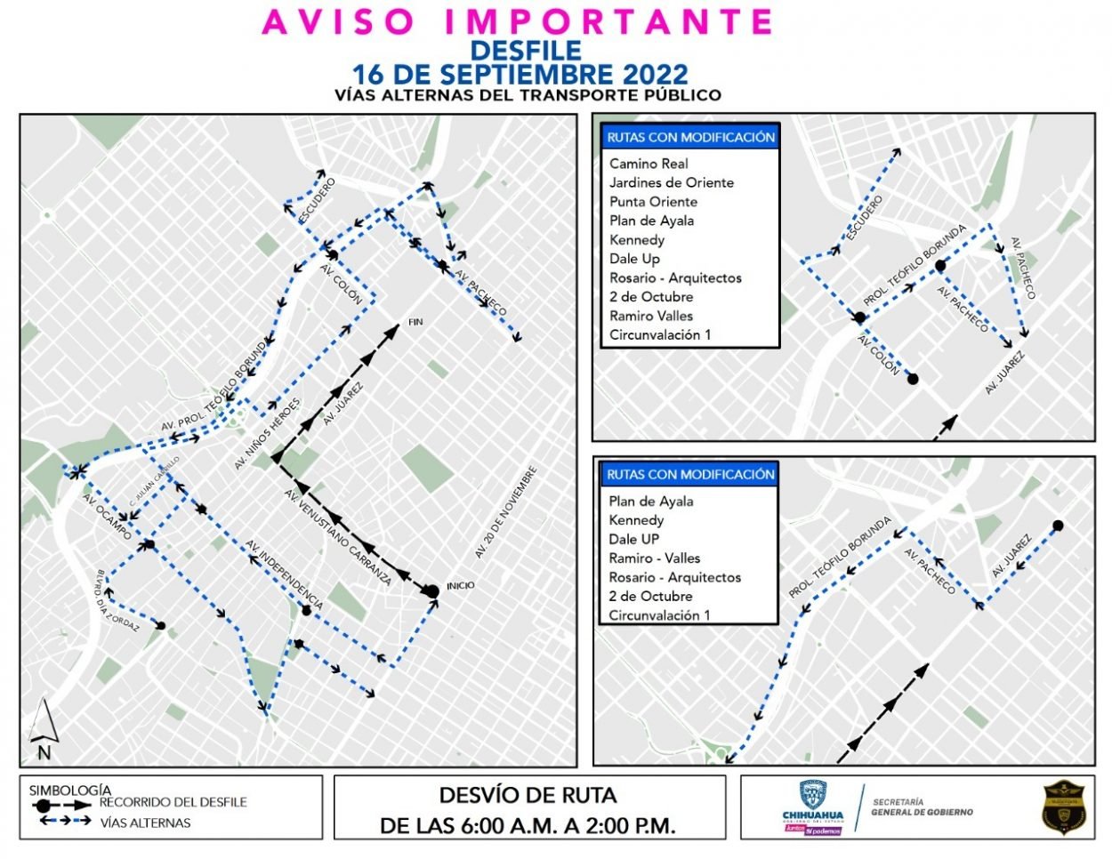 Anuncia Subsecretaría de Transporte cambios temporales en rutas por celebración del Grito y Desfile de Independencia
