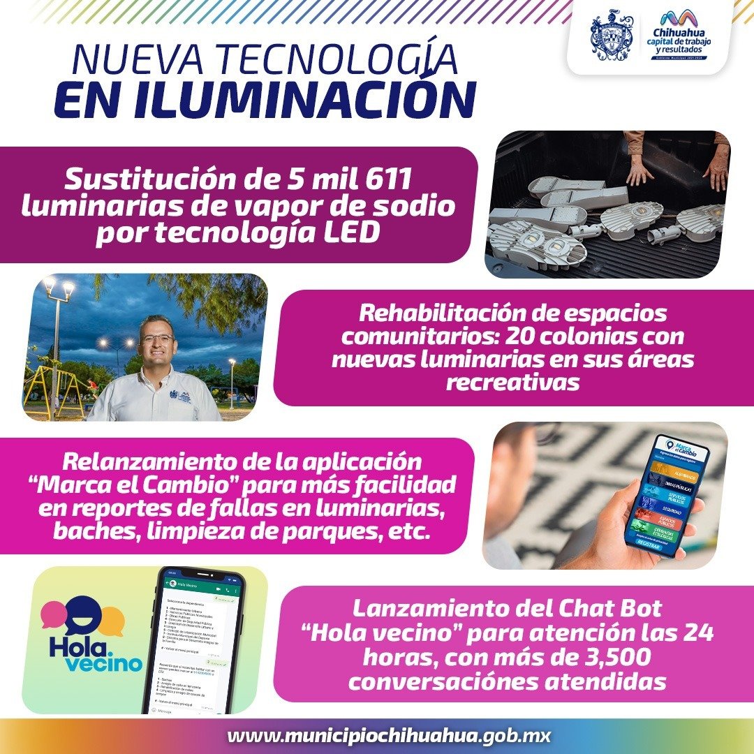 Iniciamos el reemplazo del alumbrado público con tecnología LED, tan solo de septiembre de 2021 a agosto de 2022 realizamos la sustitución de 5 mil 611 luminarias de...