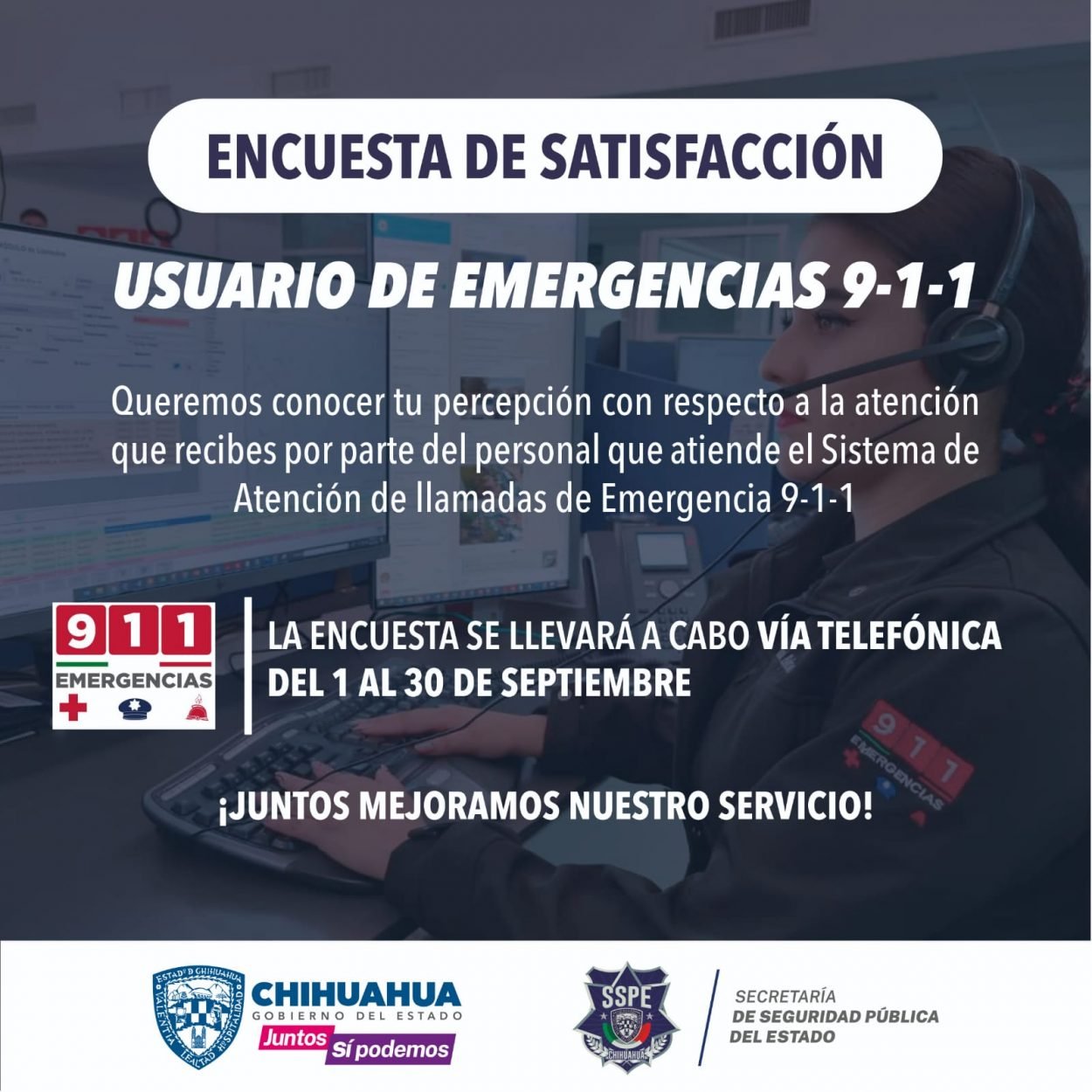 La Secretaría de Seguridad Pública del Estado (SSPE), a través del Sistema de Atención de Llamadas de Emergencia 9-1-1, lanzó una encuesta de satisfacción del usuario...