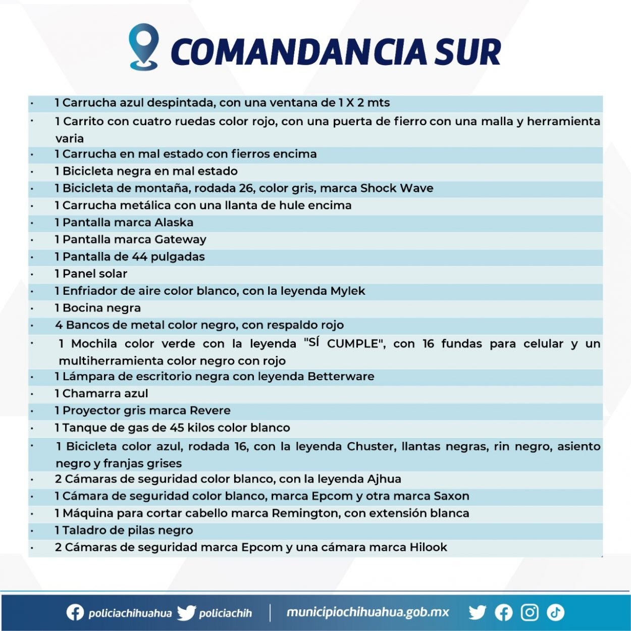 Con el objetivo entregar a sus dueños los artículos que han sido recuperados por policías municipales durante los patrullajes ordinarios o al realizar detenciones en...