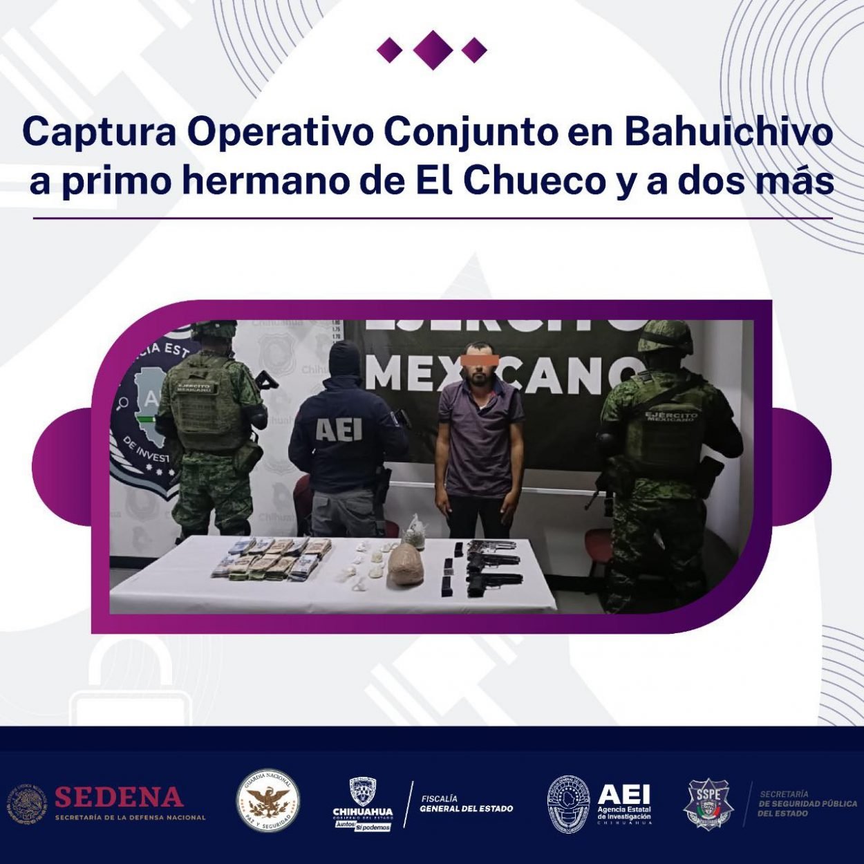 Elementos del Ejército Mexicano y la Agencia Estatal de Investigación les aseguraron tres armas de fuego, $598 mil 200 pesos en efectivo, cartuchos útiles y droga...