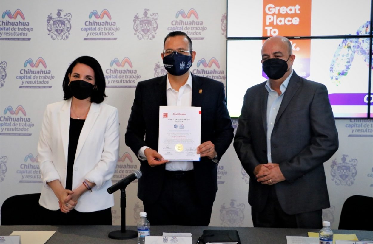 El alcalde Marco Bonilla Mendoza y la oficial Mayor del Municipio, Marcela del Carmen Piedra, recibieron por parte del vicepresidente de relaciones con clientes de Great...