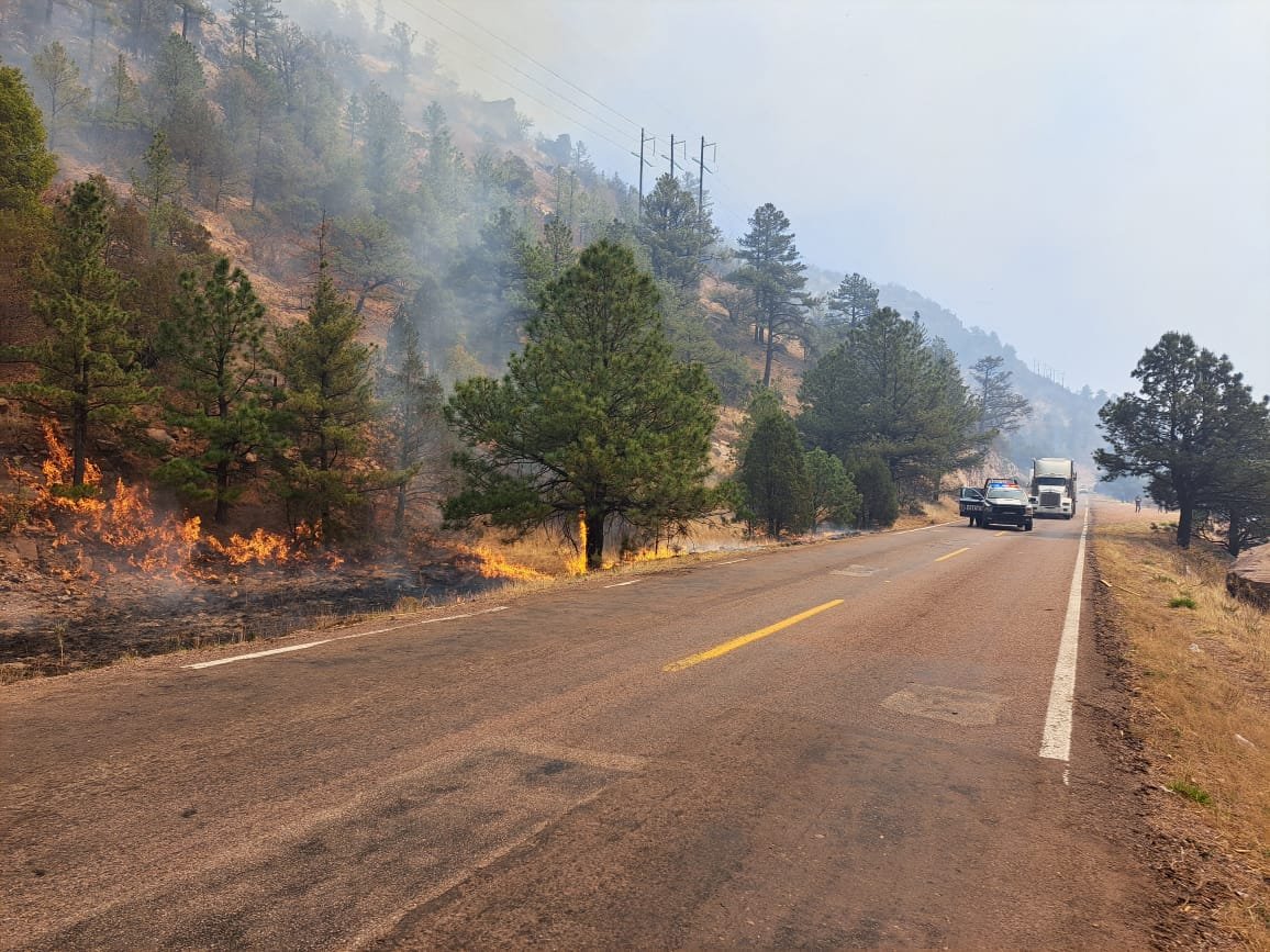 Elementos de la Secretaría de Seguridad Pública del Estado (SSPE) Zona Occidente, brindaron apoyo a personal de la Comisión Nacional Forestal (Conafor), en su combate...