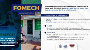 El Gobierno Municipal a través del Fondo Municipal para Emprendedores de Chihuahua, ha canalizado 3.6 millones de pesos en financiamiento directos a micro, pequeñas y...