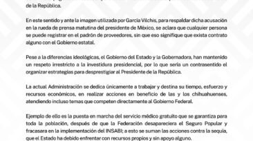 El Gobierno del Estado de Chihuahua desmiente categóricamente las acusaciones hechas esta mañana por Ana Elizabeth García Vilchis, en las que señala a la Administración...