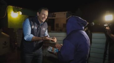 El alcalde Marco Bonilla y la presidenta del DIF Municipal, Karina Olivas, entregaron cenas navideñas en la colonia Tres Marías para compartir con las familias la...