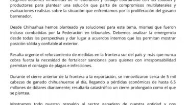 Posicionamiento que emite el Grupo Parlamentario del PRI en el Congreso del Estado de Chihuahua sobre el cierre de la frontera de Estados Unidos para la exportación de ganado.