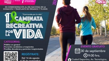 La Secretaría de Salud, a través del Centro Estatal de Trasplantes (Ceetra), recuerda a la ciudadanía que este sábado 30 de septiembre se realizará la 1era Caminata...