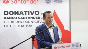 El alcalde de Chihuahua, Marco Bonilla Mendoza, encabezó la entrega de un donativo por parte de funcionarios del Banco Santander por la cantidad de 2 millones 976 mil...