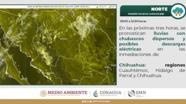 La Coordinación Estatal de Protección Civil (CEPC), prevé para la tarde de este martes 20 y miércoles 21 de junio la probabilidad de lluvias ligeras a dispersas, con...