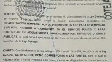 El exgobernador Javier Corral Jurado, no podrá desempeñar empleos, cargos o comisiones en el servicio público, ni participar en adquisiciones, arrendamientos, servicios...