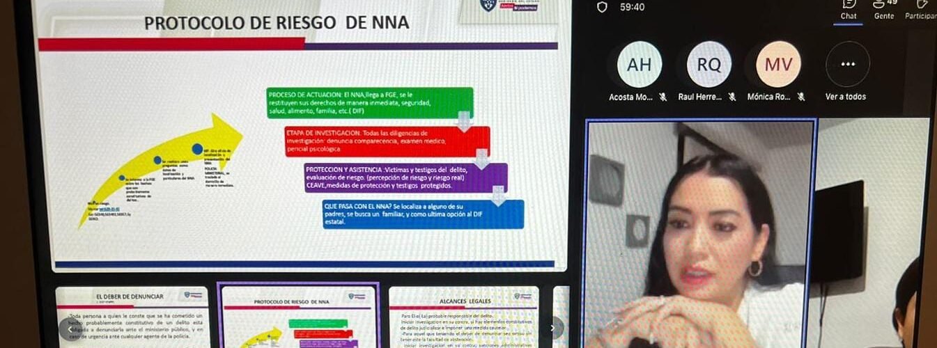 El curso fue impartido por la Coordinadora Regional de la FEM, Yubia Yumiko Ayala Narváez y la encargada del Departamento de Medicina Legal en la FEM, Mariana Alejandra Mijares Rivera, quienes explicaron y analizaron la aplicación de la Norma Oficial Mexicana 046-SSA2-2005, el ‘Síndrome de Kempe’ que es el síndrome del niño golpeado y el Deber de Denunciar.