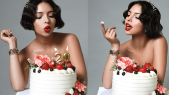 Estilo Ángela Aguilar en medio del hate celebra sus 20 con foto en donde sólo la cubre el pastel 2 min de lectura