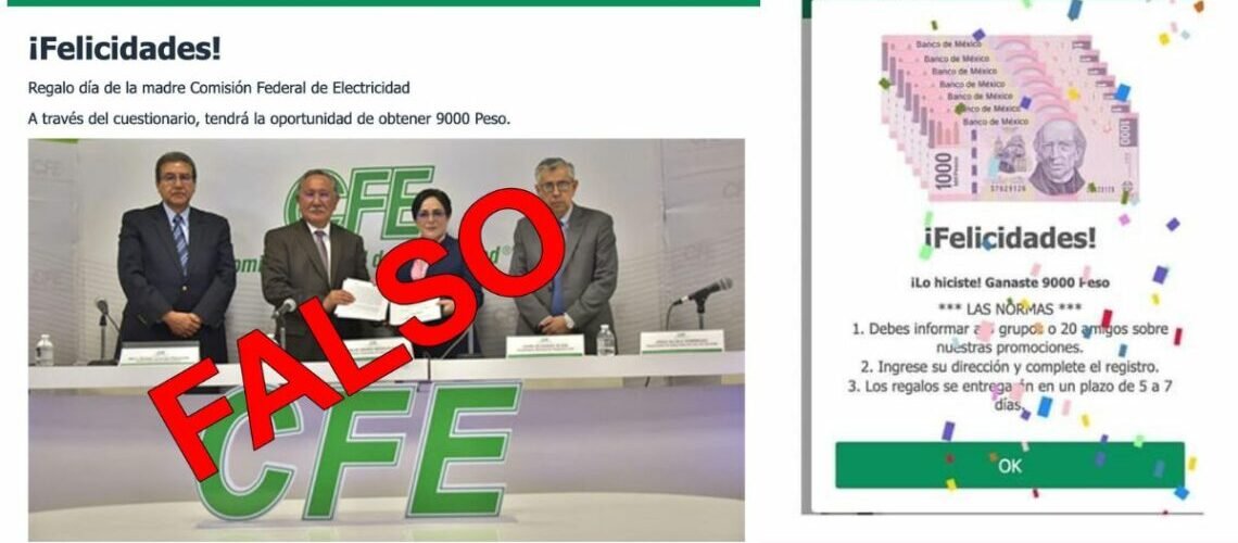 En redes se ha hecho viral la noticia “CFE regalo Día de las Madres” si has escuchado sobre eso, recibiste un mensaje o te llegó el rumor sobre que “CFE regala dinero por el Día de las Madres”, ten cuidado ya que se trata de un fraude. Te roban tu identidad y dinero.