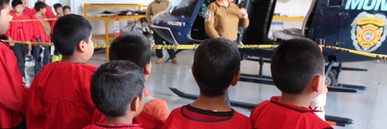 Debido al elevado número de estudiantes, las visitas guiadas fueron divididas en partes, haciendo más interactivo el aprendizaje para las y los infantes, quienes también recibieron una explicación por parte del personal de la Unidad de Operación Aéreas sobre la manera en que el helicóptero Halcón I vigila desde el aire.