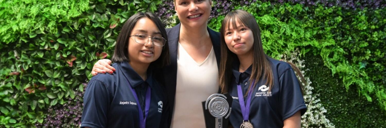 La Gobernadora del Estado recibió en su despacho de Ciudad Juárez, a Gema Vianey Guerrero Minjarez y Alejandra Espinosa González, alumnas del Colegio de Educación Profesional Técnica (Conalep) plantel Juárez III, que representarán a México en el concurso de ciencia y tecnología “Infomatrix World Finals”, en Rumania.