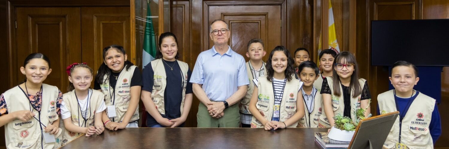 Este día, el alcalde Jorge Cruz Russek, recibió en su despacho a quienes resultaron seleccionados como reporteros infantiles del Heraldo de Chihuahua, en su edición 2024, con el fin de dialogar de sus gustos, aspiraciones y para que conozcan más de cerca las actividades de la Presidencia Municipal.