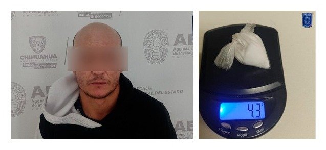 Elementos de la Agencia Estatal de Investigación, adscritos a la Fiscalía de Distrito Zona Occidente, detuvieron en flagrancia en el seccional de Anáhuac, a Jonathan M. R., de 34 años de edad, en posesión de la droga conocida como cristal.