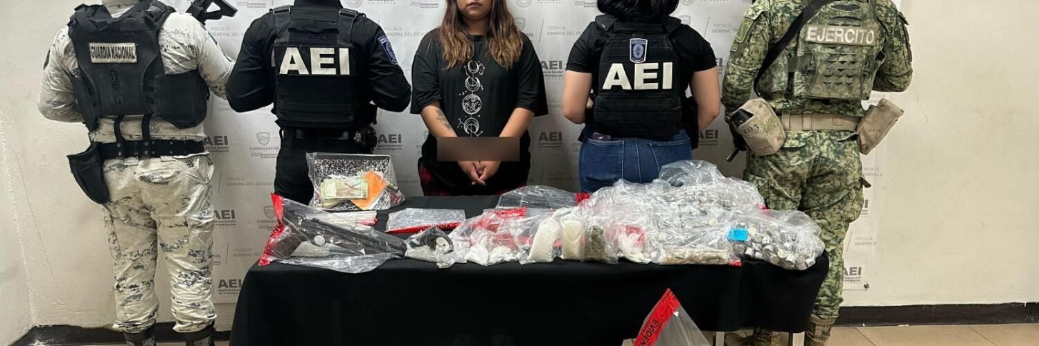 Elementos de la Agencia Estatal de Investigación adscritos a la Fiscalía de Distrito Zona Norte, en coordinación con la Guardia Nacional y la Secretaría de la Defensa Nacional, detuvieron a una persona de nombre Nancy M. D., por el delito de posesión ilegal de armas de fuego y por delitos contra la salud.