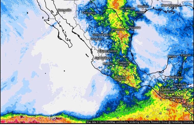 Estas condiciones climáticas pudieran traer consigo actividad eléctrica y caída de granizo, debido a la presencia de una línea seca sobre el norte de México sumada a una corriente en chorro en interacción con inestabilidad en la atmósfera superior, un canal de baja presión y el ingreso de humedad procedente de ambos litorales.