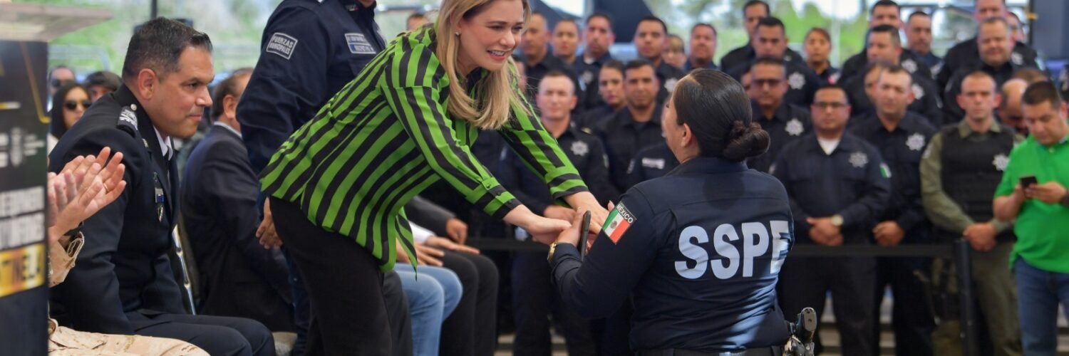 En compañía del titular de la SSPE, Gilberto Loya Chávez, la mandataria entregó 1,397 kits de despliegue policial, acto en el que destacó los avances alcanzados al momento por su administración, en la tarea de dignificación de los cuerpos policiales.