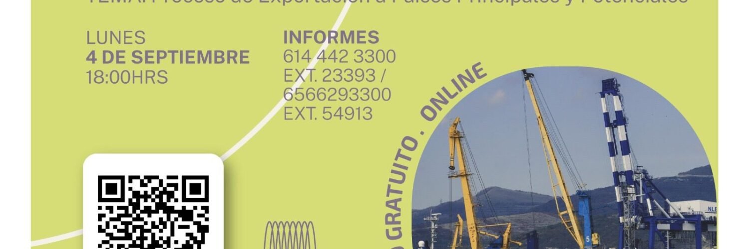 El lunes 4 de septiembre a las 18:00 horas, se ofrecerá la octava sesión virtual del curso “Conoce, produce, exporta y aporta” con el tema de Proceso de Exportación a Países Principales y Potenciales. La liga de registro es: https://bit.ly/miproductoaxportar8