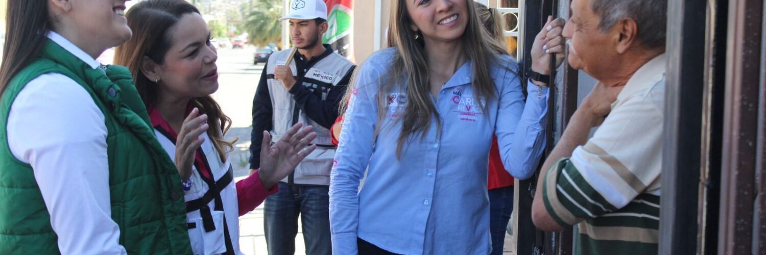 La aspirante a Diputada local por el Distrito 16, Carla Rivas, llegó desde temprana hora a la colonia Rosario para realizar el recorrido de la mano de Karina Olivas, esposa del candidato a la alcaldía de Chihuahua, Marco Bonilla.