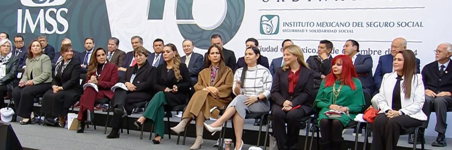 La gobernadora Maru Campos acudió como invitada especial a la 115 Asamblea General Ordinaria del Instituto Mexicano del Seguro Social (IMSS), celebrada en el Patio Central de Palacio Nacional, en la Ciudad de México.
