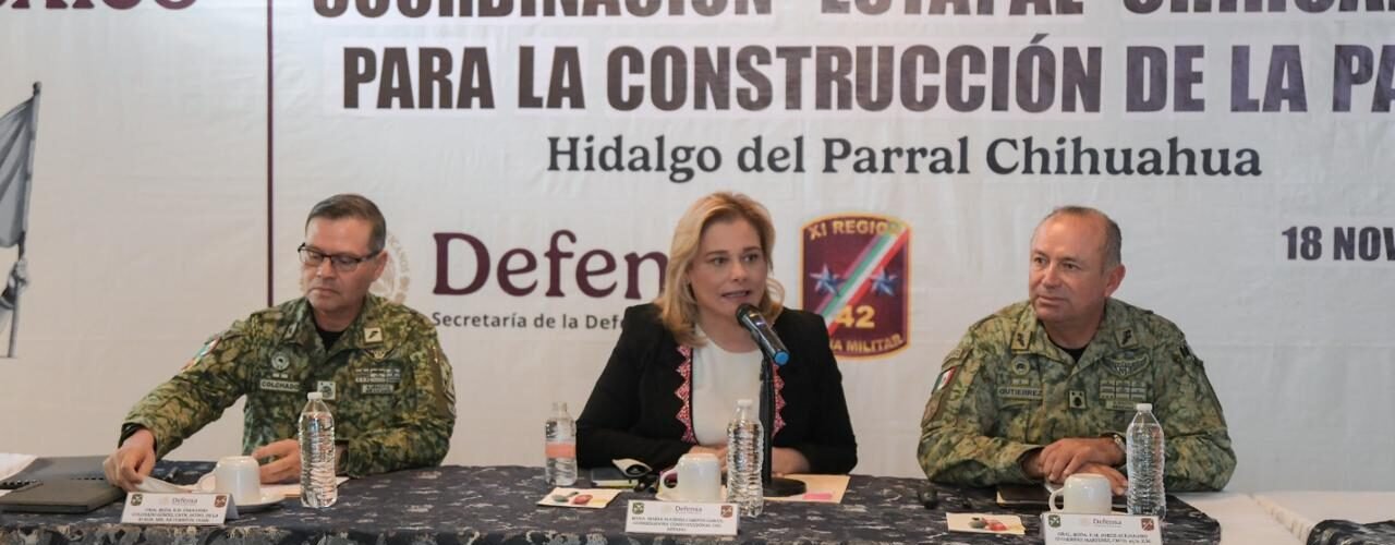 La gobernadora Maru Campos encabezó la sesión de la Mesa Estatal de Construcción de Paz que se llevó a cabo en Parral, con el fin de analizar las estrategias implementadas por los tres niveles de Gobierno para atender la seguridad en la región.