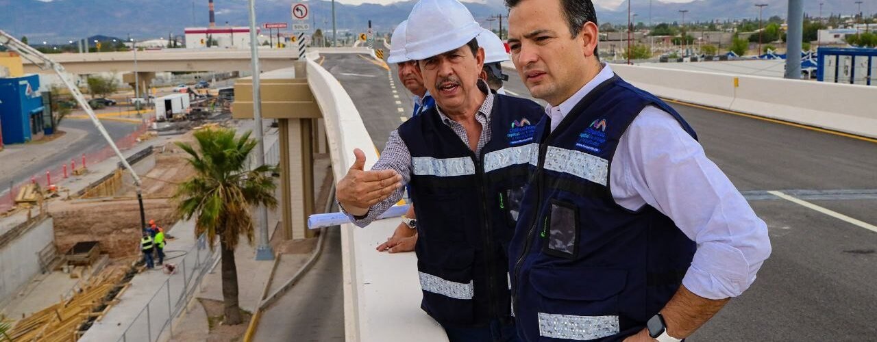 El alcalde de Chihuahua, Marco Bonilla Mendoza, hizo un recorrido de supervisión por el Paso Superior del Distribuidor Vial Sur, para afinar los últimos detalles previos a su apertura, en beneficio de las familias que a diario circulan por esta zona para llegar a sus hogares o lugares de trabajo.