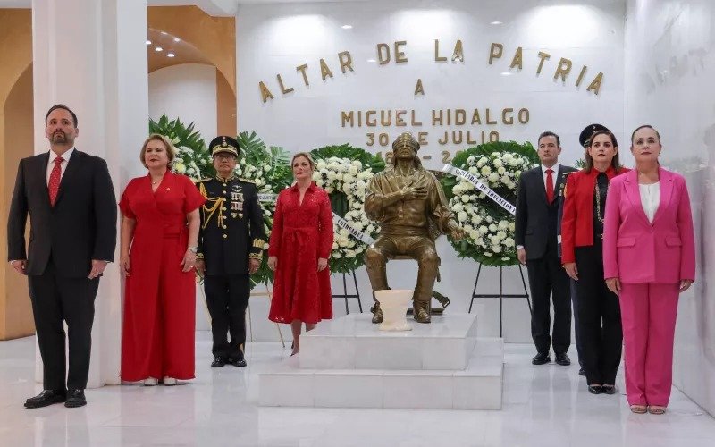 La presidenta del H. Congreso del Estado, diputada Adriana Terrazas y la presidenta del Tribunal Superior de Justicia del Estado, la magistrada Myriam Hernández, así como de autoridades militares y miembros del gabinete de la gobernadora Maria Eugenia Campos Galván, previo al grito formaron parte de la guardia de honor en el Altar a la Patria, lugar que fue escenario del fusilamiento de don Miguel Hidalgo y Costilla el 21 de julio de 1811.