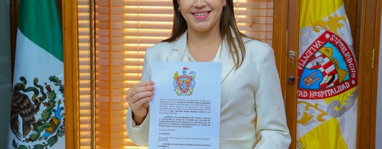 El alcalde de Chihuahua, Marco Bonilla Mendoza, tomó protesta a la arquitecta Alondra María Martínez Ayón como directora del Instituto de Planeación Integral del Municipio de Chihuahua (IMPLAN).