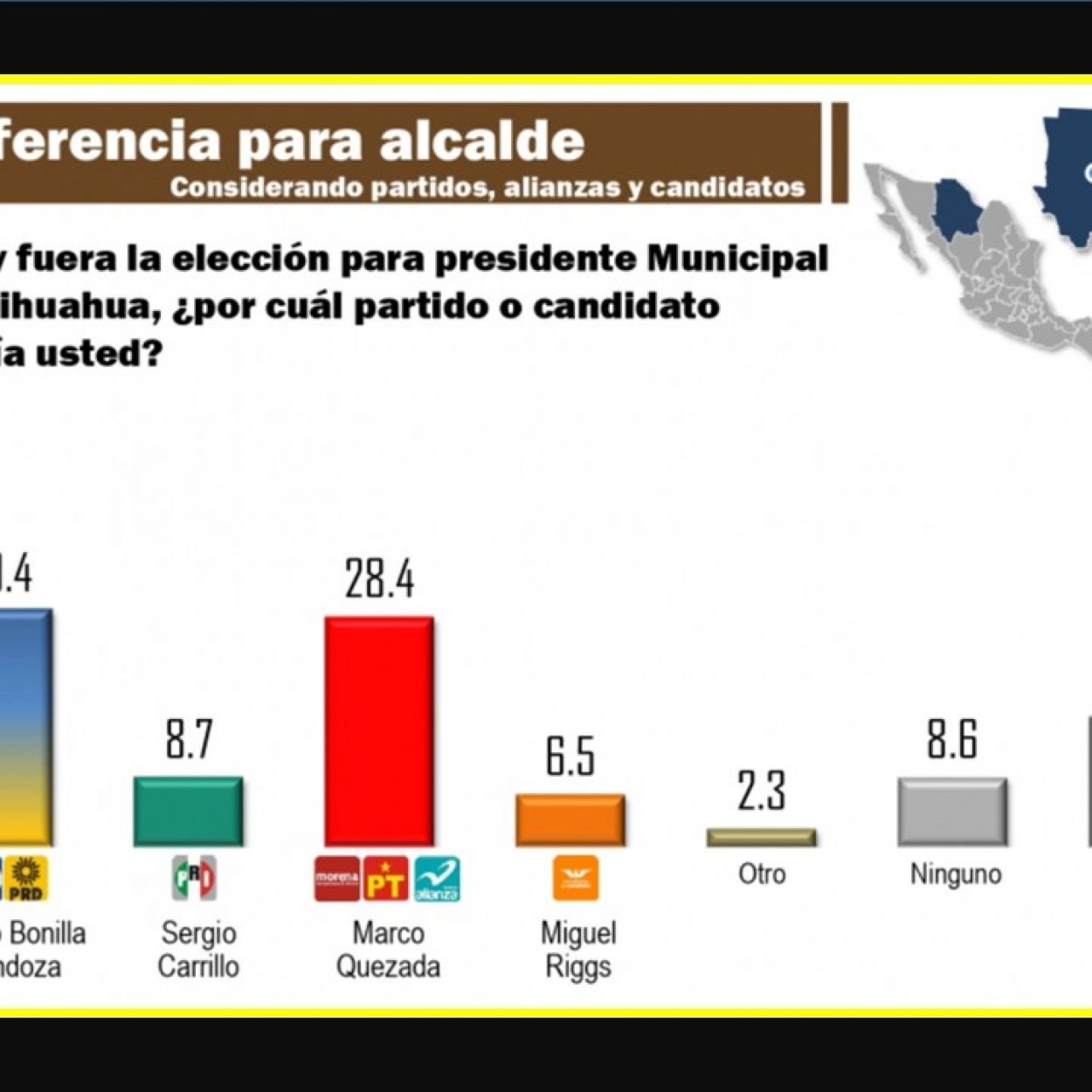 Politica #PREP Resultados de Alcaldía del 98.14%: Bonilla 55.25% y Marco Quezada 29.47% 1 min de lectura