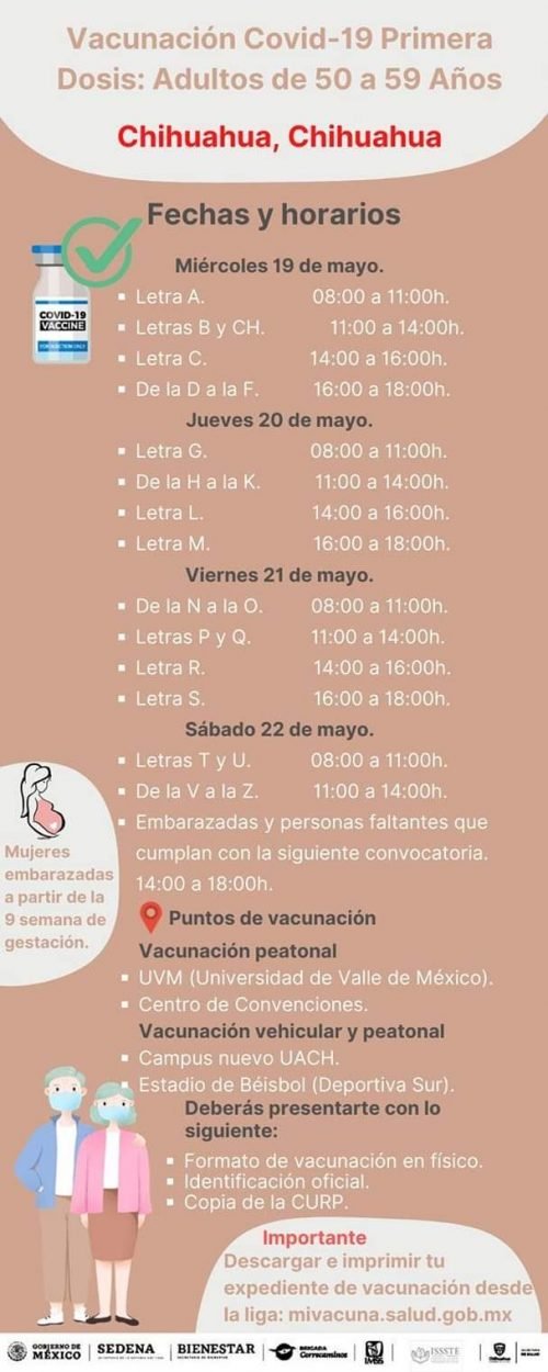 Inicia la vacunación de personas 50 a 59 años.