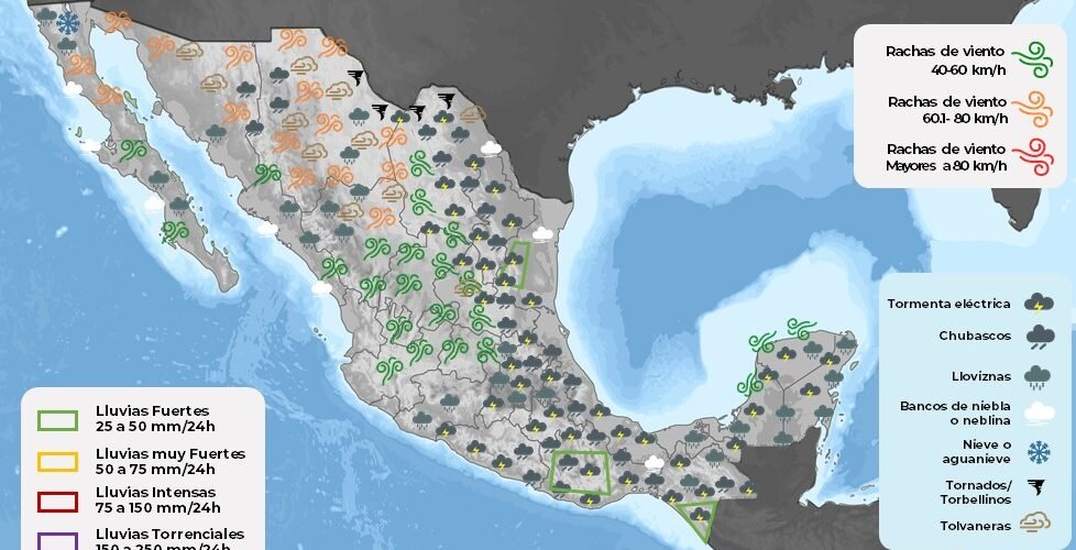 Para esta tarde-noche de jueves 4 de mayo, el pronóstico indica la posibilidad de lluvias aisladas en las zonas norte y noroeste del estado de Chihuahua, sobre los municipios de Ahumada, Temósachic, Moris, Uruachi, Ocampo, Bocoyna, Guerrero y Maguarichi; además de vientos con rachas de hasta 55 kilómetros por hora en Janos, Guachochi, Balleza y Nonoava.